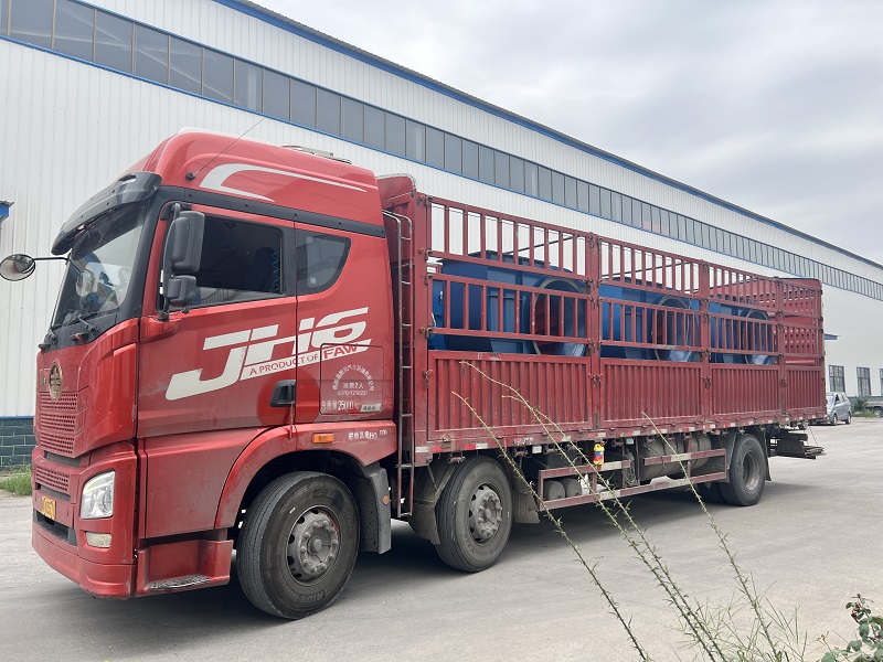 滿載著 4-73 窯爐系列離心風機的貨車緩緩駛出倉庫,目的地 —— 商丘。這款風機經(jīng)過嚴格的質量檢測和調試,終于踏上了前往商丘的旅程。