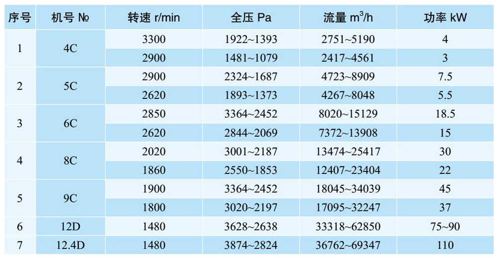 1、引風(fēng)機(jī)制成單吸入,通常機(jī)號(hào)有№4、5、6、8、9、12、12.4七種;